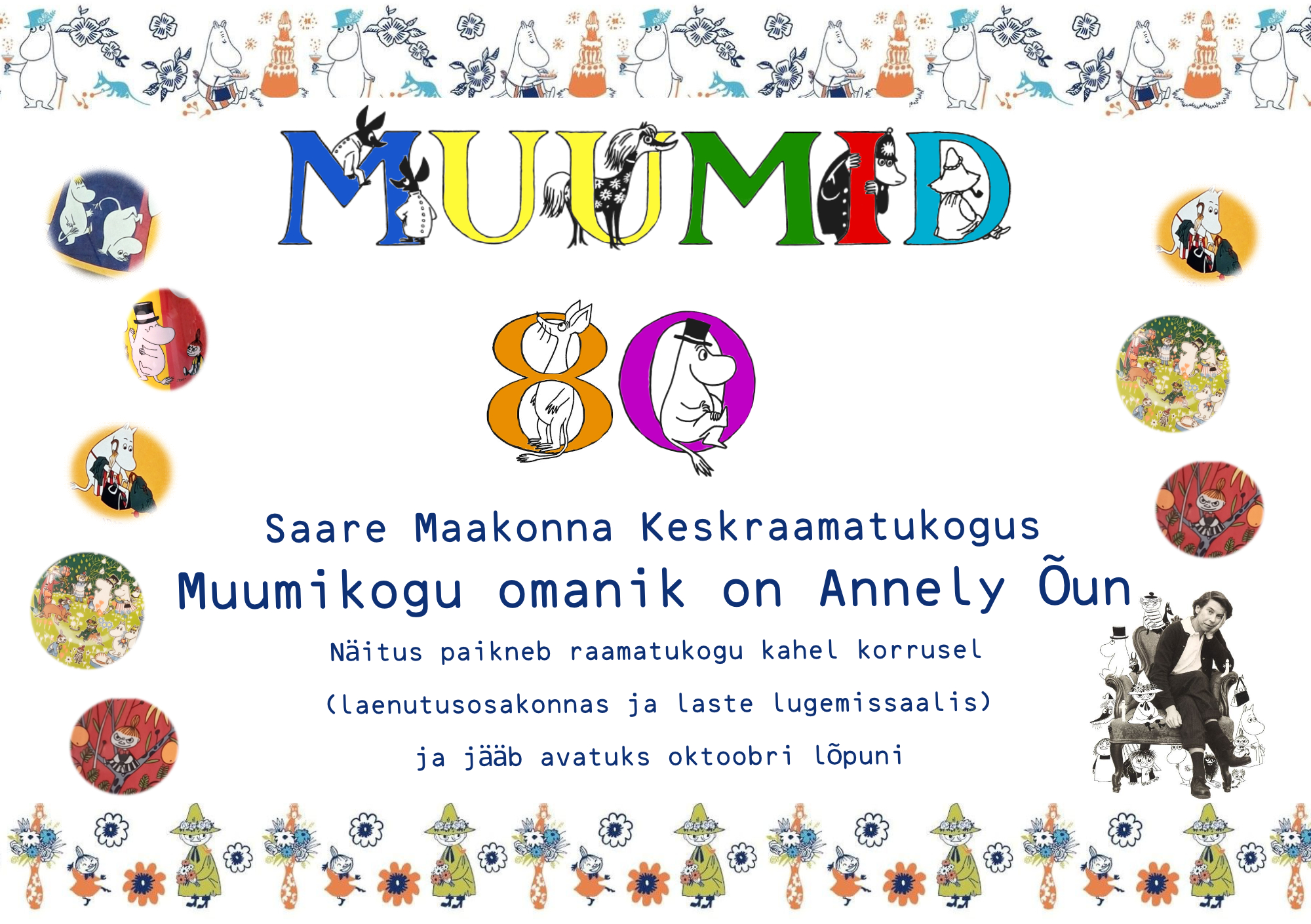 Näitus „Muumid 80“ paikneb Saare Maakonna Keskraamatukogu kahel korrusel (laenutusosakonnas ja laste lugemissaalis) ning jääb avatuks oktoobri lõpuni.