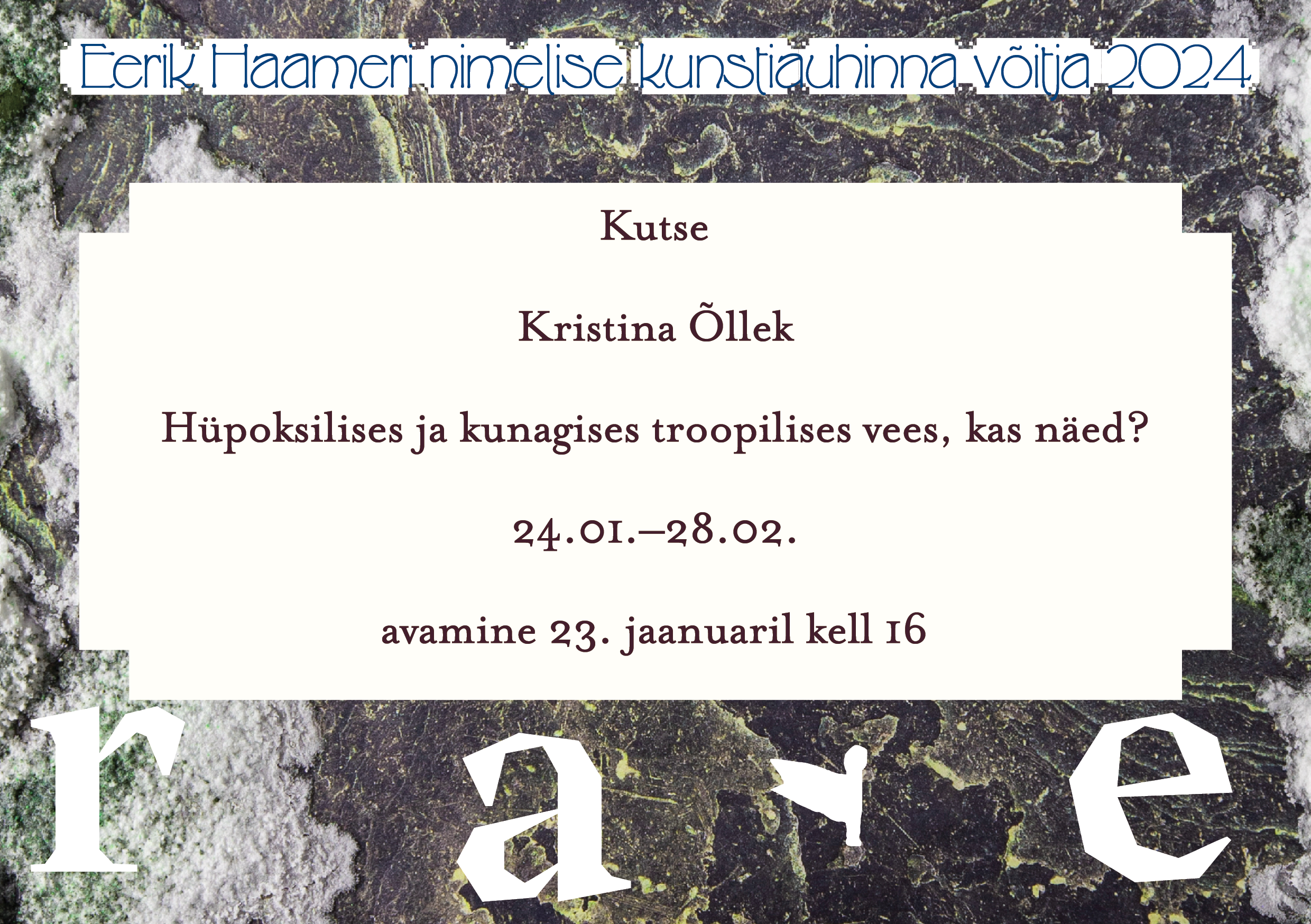 Kristina Õlleku isikunäitus Kuressaare Raegaleriis jätkab kunstniku pikaajalist uurimistööd Läänemere ökoloogiliste, geoloogiliste ja keemiliste protsesside üle. 2024. aastal Eerik Haameri nimelise kunstiauhinna pälvinud Õlleku praktika liigub ajas mitmes suunas korraga: tänapäeva eutrofeerunud ja hüpoksilistest vetest sadade miljonite aastate taha, aega, mil Eesti ala paiknes ekvaatoril ja oli kaetud madala troopilise merega.