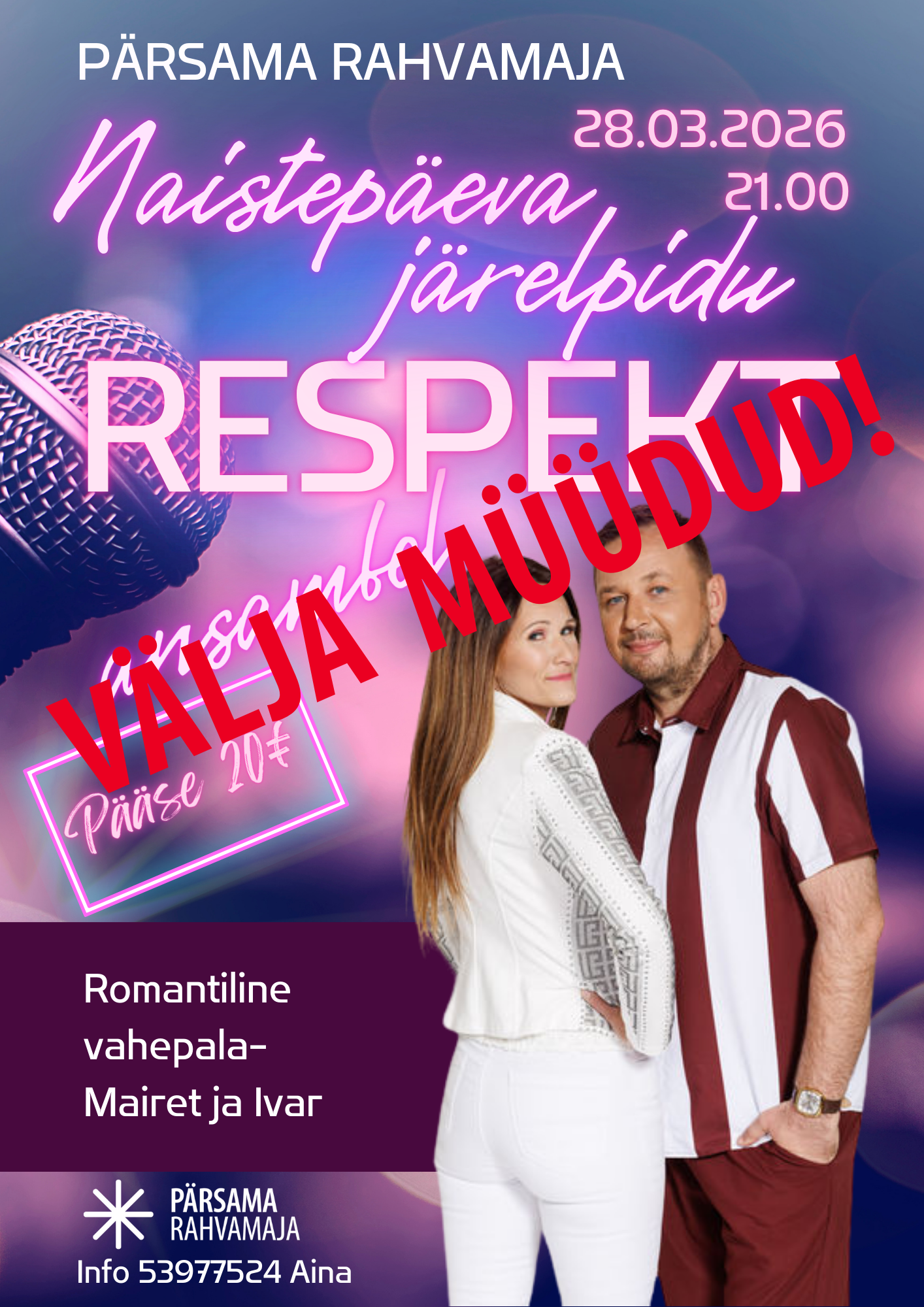 Naistepäevale pühendatud romantiline tantsuõhtu ansambliga Respekt, vahepalad- Mairet ja Ivar.
