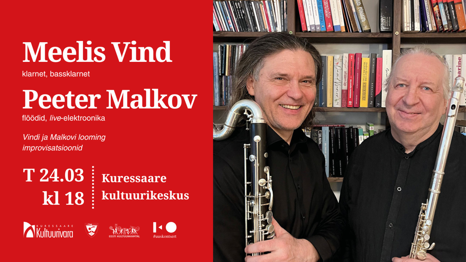 Meelis Vindi ja Peeter Malkovi kontsert toob kuulajani muusika, kus kohtuvad improvisatsiooniline vabadus, poeetiline sügavus ja peen heliline dialoog. Saksofonist ja bassklarnetist Meelis Vind on tuntud oma omanäolise helikeele ja meditatiivse väljenduslaadi poolest, mis liigub jazzi, nüüdismuusika ja minimalistlike mõjude piirimail – kontsert on kui kutse aeglustada sammu ja siseneda helide maailma, kus vaikusel on sama suur kaal kui kõlal.