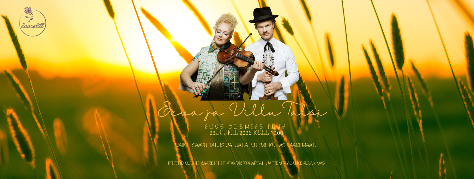 Jaaniõhtu eel ootame teid Saarelille koduhoovi kuulama ehedat ja südamest tulevat muusikat. Meile tulevad külla Eeva ja Villu Talsi.