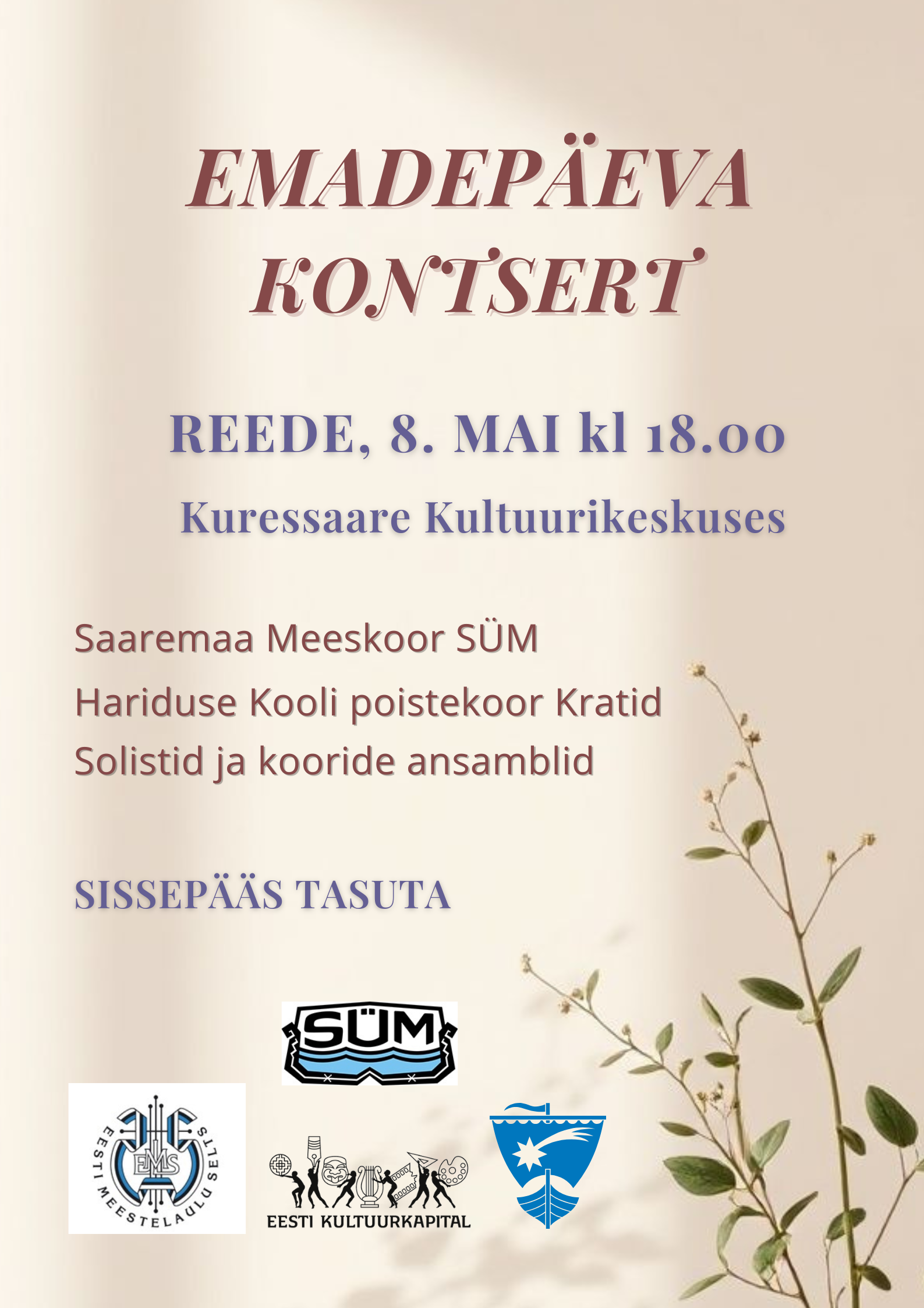 - Saaremaa Meeskoor SÜM, dirigendid Ester Soe ja Mari Ausmees